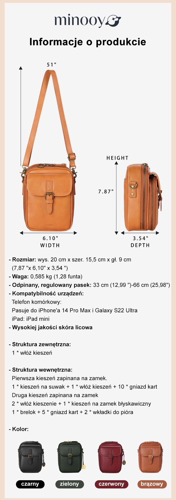 Vintage dwuwarstwowa torebka listonoszka o dużej pojemności